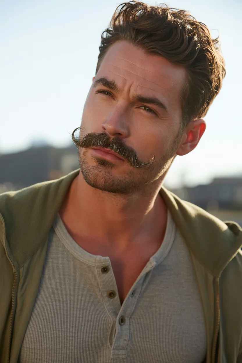 A Handlebar usually looks best with some confidence and style in the clothing too. A Beardstache feels right with boots, denim, tees, and rougher textures. A Pencil mustache often fits sharper, cleaner outfits.