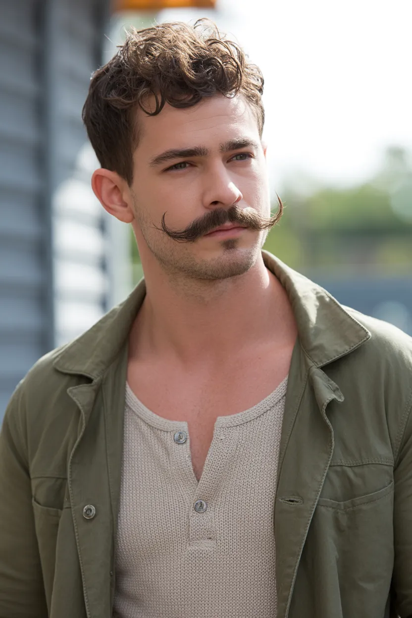 I like this one because it offers personality without feeling too loud. It works well with modern haircuts, fitted clothes, and even simple outfits. It gives you that little extra something, which is often exactly what a good mustache should do.