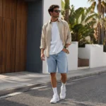 If your Easter weather feels warm, white shorts can absolutely work. Pair them with a chambray shirt for a relaxed look that still feels neat and pulled together. This outfit looks casual, crisp, and perfect for a sunny Easter day.