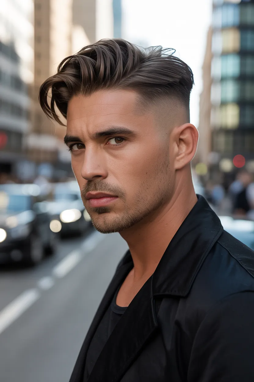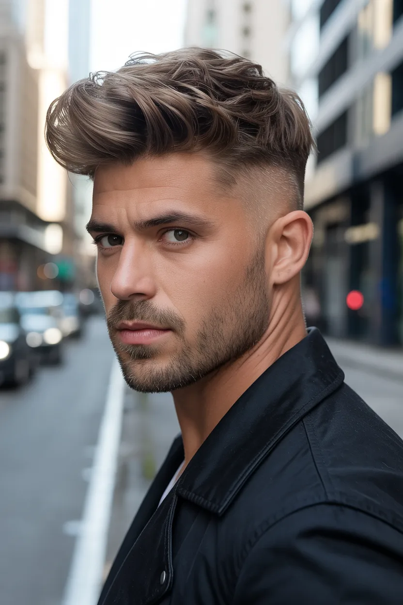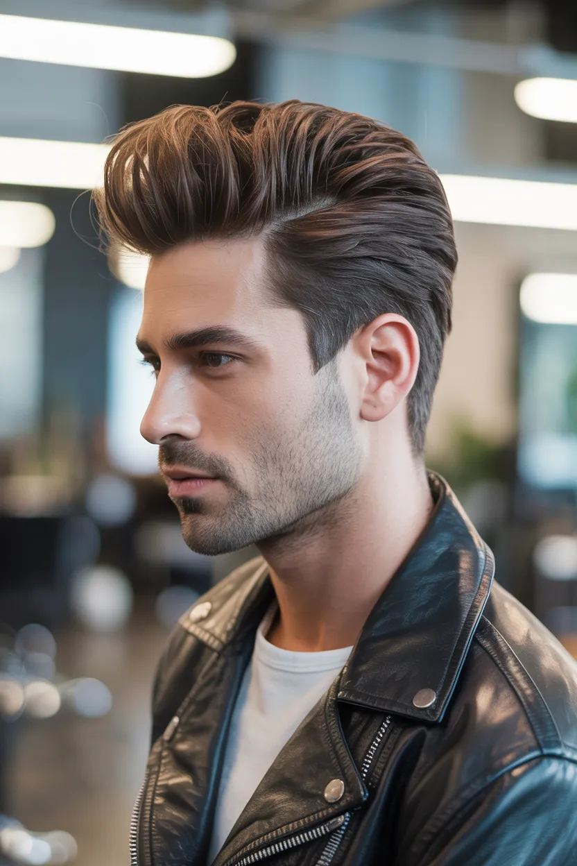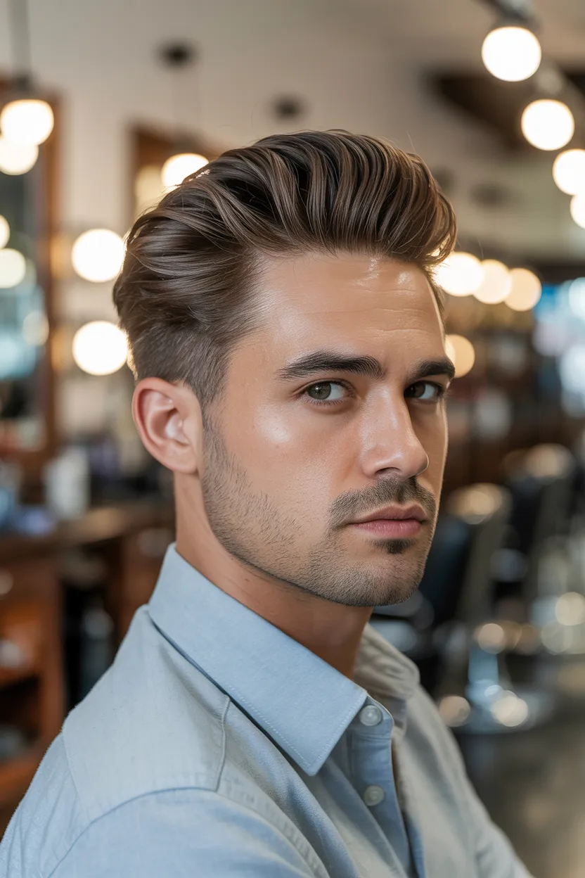 This haircut usually features shorter sides with more length left on top. The front gets styled upward and slightly back, but the texture keeps it from looking too stiff. That is what makes it feel modern while still staying classic.