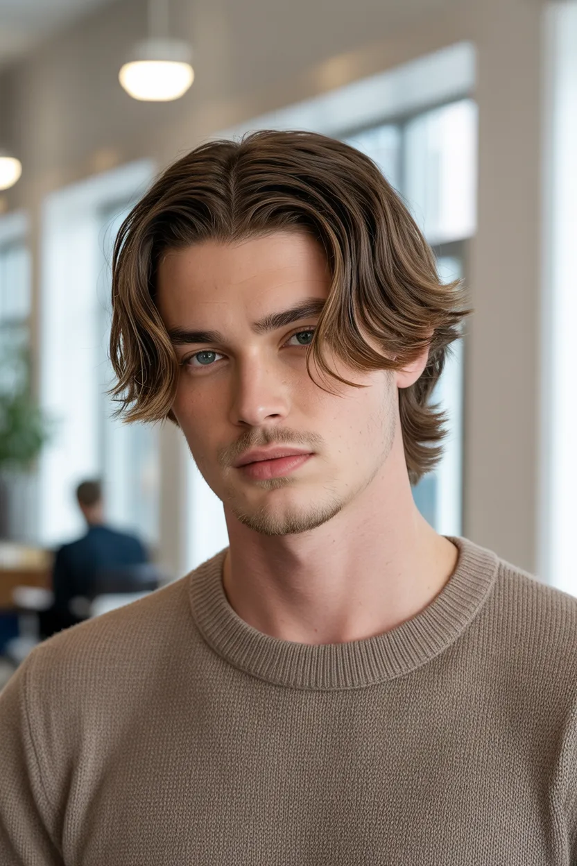 This haircut suits guys who hate overly polished styles. It feels more casual, a little artistic, and easygoing without losing shape. If you want something with personality, this one has plenty of it.