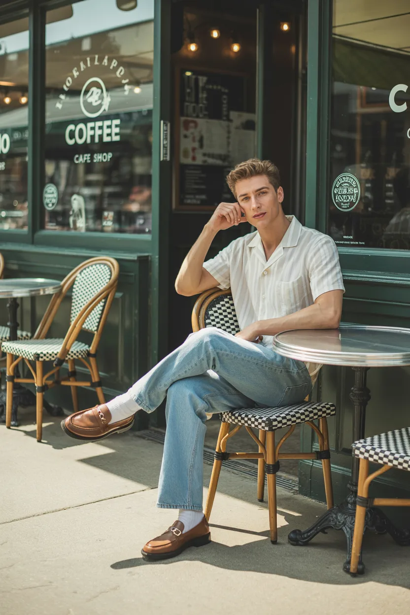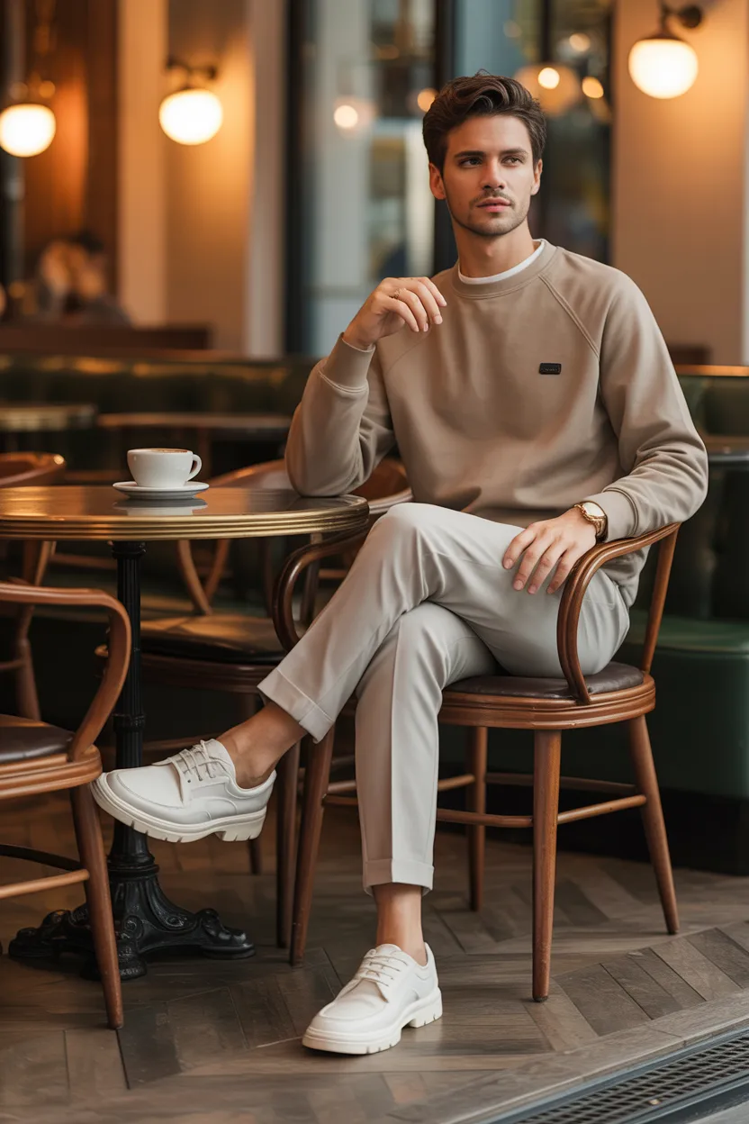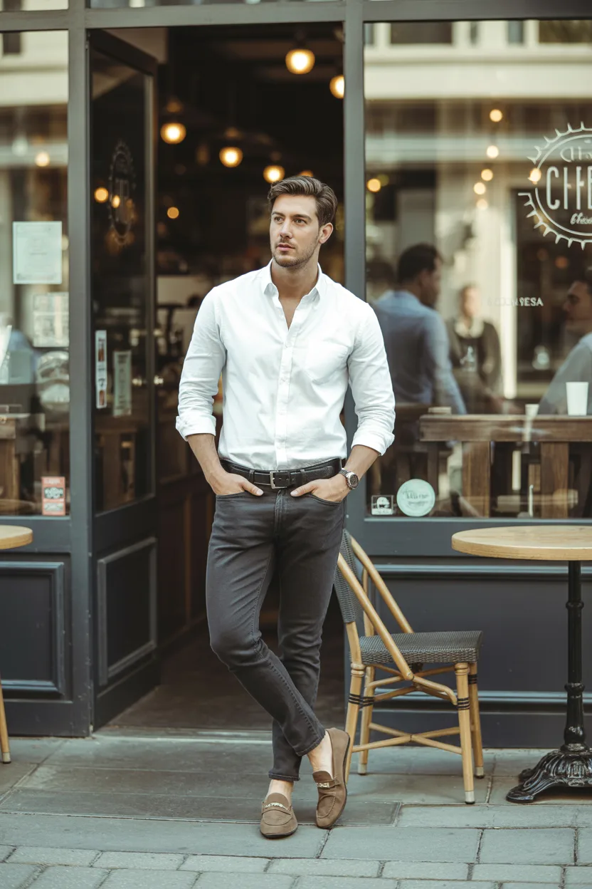 Add loafers or minimalist sneakers depending on the vibe of the café. Keep the fit clean, and let the simplicity carry the outfit.