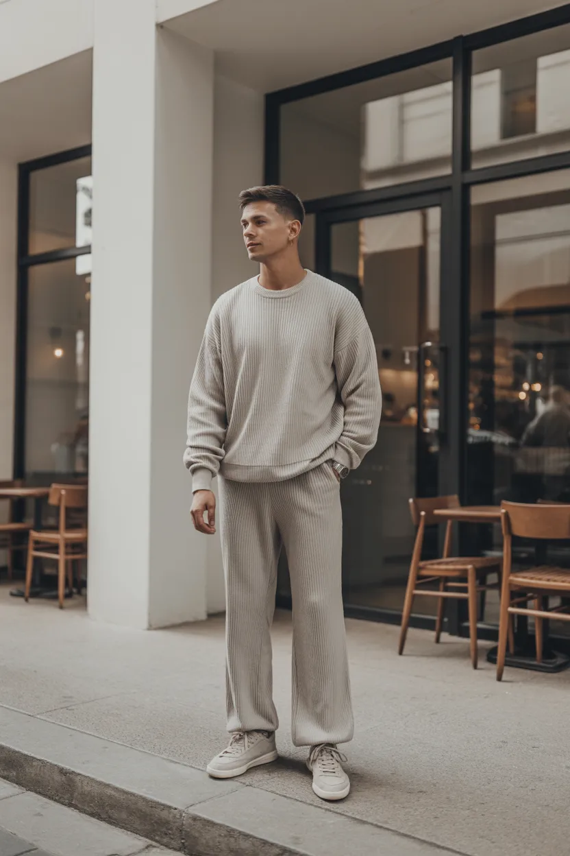 A matching knit set in a neutral tone can look modern, clean, and surprisingly confident. It is a more fashion-forward choice, but when done right, it stands out in a good way.