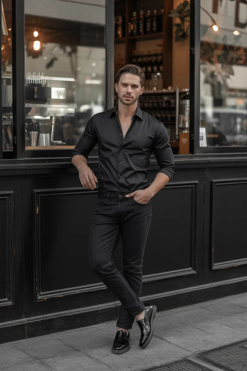 A black top with black jeans or black trousers can look incredibly sharp when done right. It feels sleek, modern, and very intentional. Confidence shows up fast in monochrome outfits.