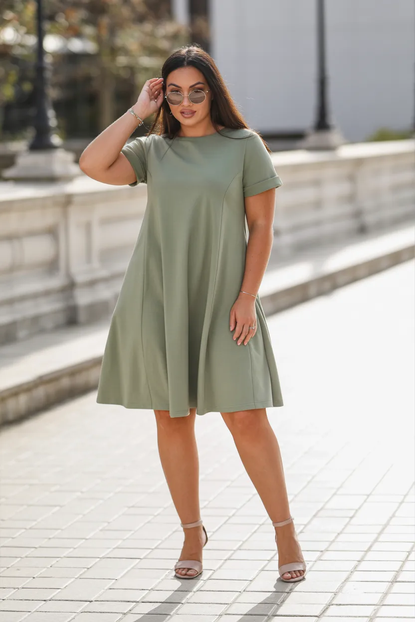 A shorter hemline naturally draws the eye downward. That shifts focus away from the midsection and creates balance in the whole outfit. You do not need to wear super short pieces if that is not your thing, but above-the-knee dresses, skirts, and tailored shorts can look amazing.