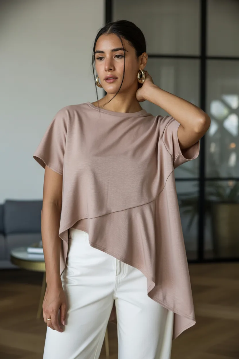 Tops that cling too tightly around the stomach often highlight the exact area you may want to soften. On the flip side, oversized tops can make you look bigger than you are. The sweet spot sits right in the middle: a top that skims the body without hugging every curve.