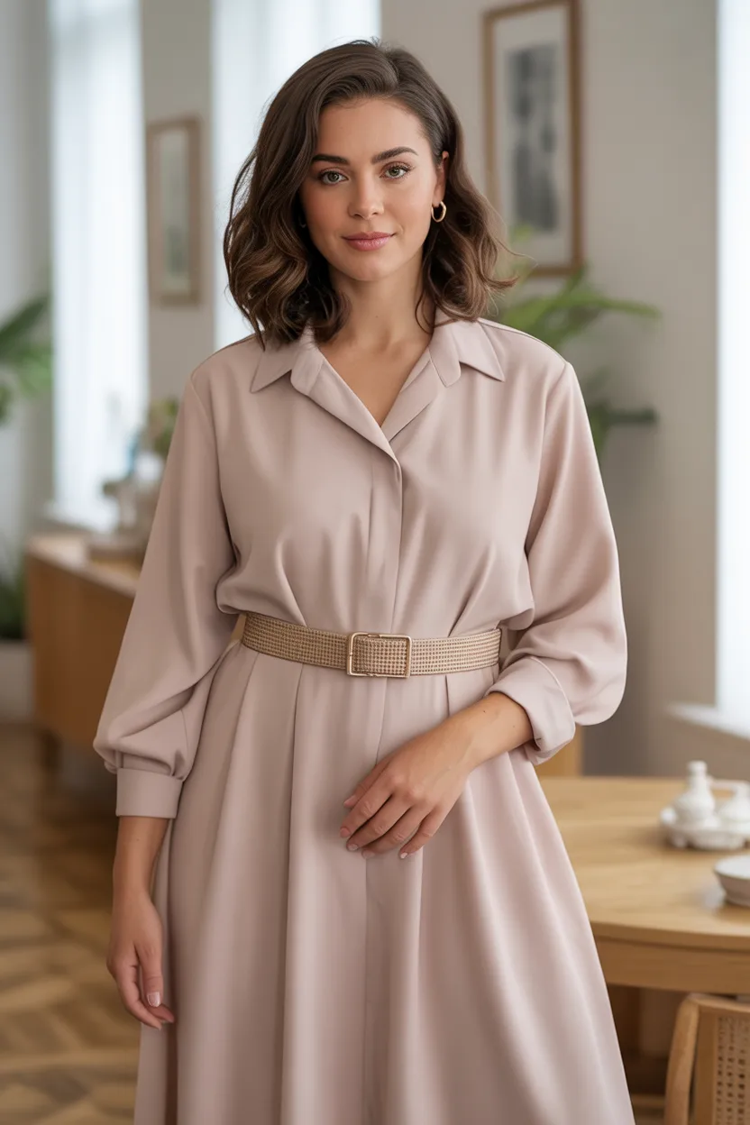 The goal is to suggest shape, not squeeze your body into submission. Belts work best on dresses, cardigans, and tunics that already have some drape.