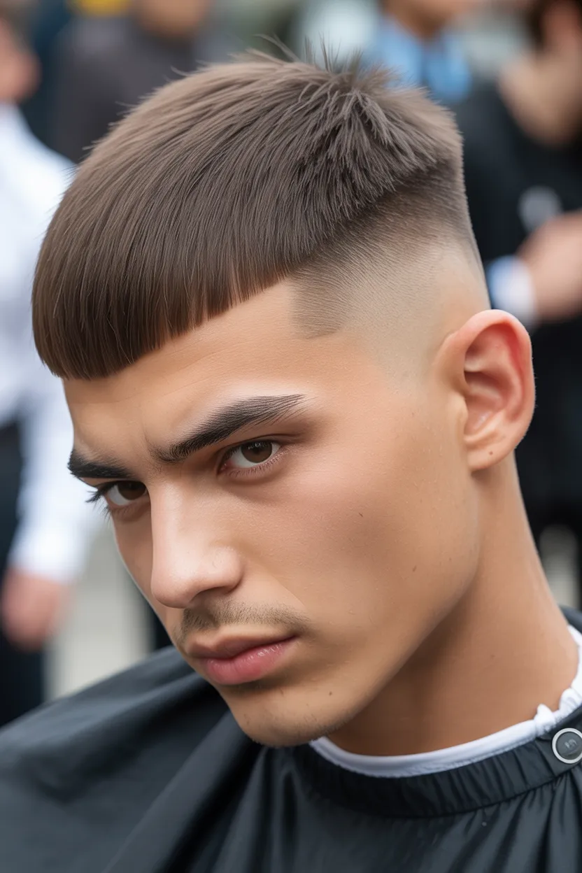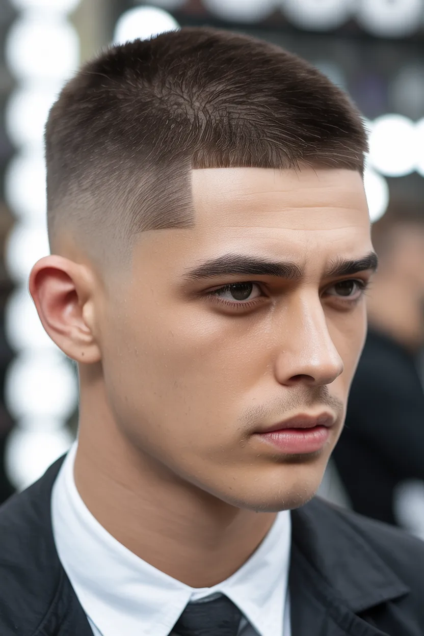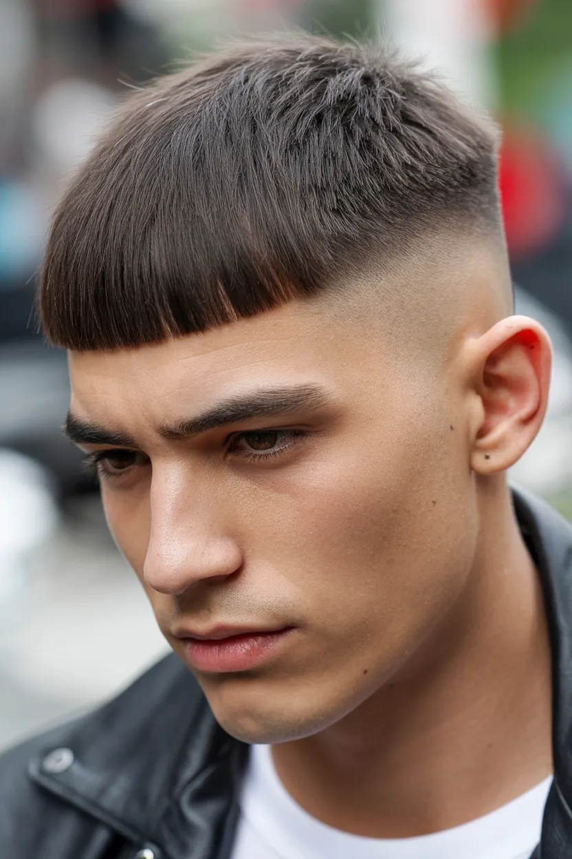 This cut is perfect for men who like strong lines and very little maintenance. It feels modern right away, and the sharp sides make the haircut stand out.
