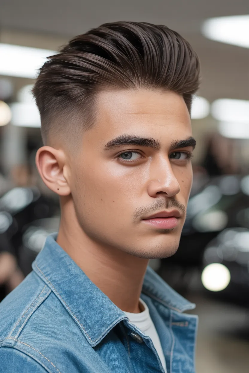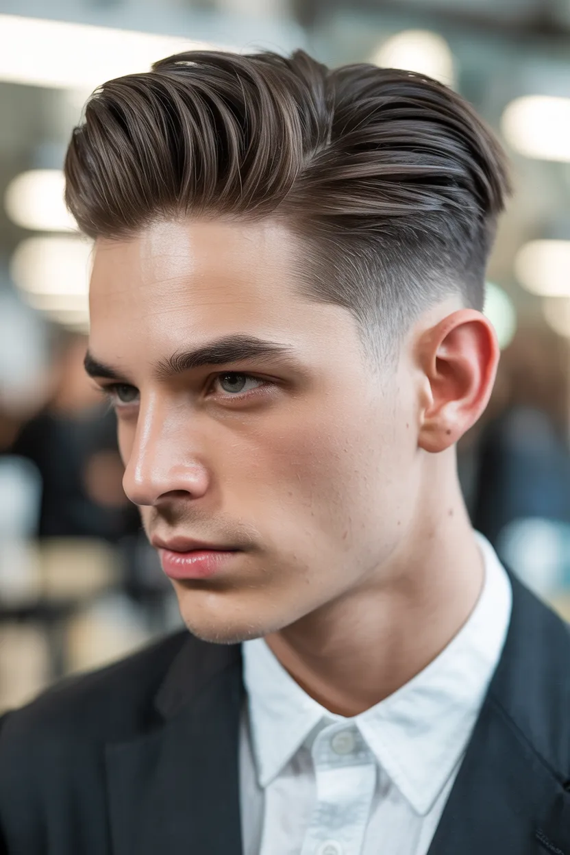 The modern pompadour gives straight hair height, shape, and a strong, stylish finish. Unlike the old-school version, this one looks softer and more wearable, especially with faded or tapered sides.