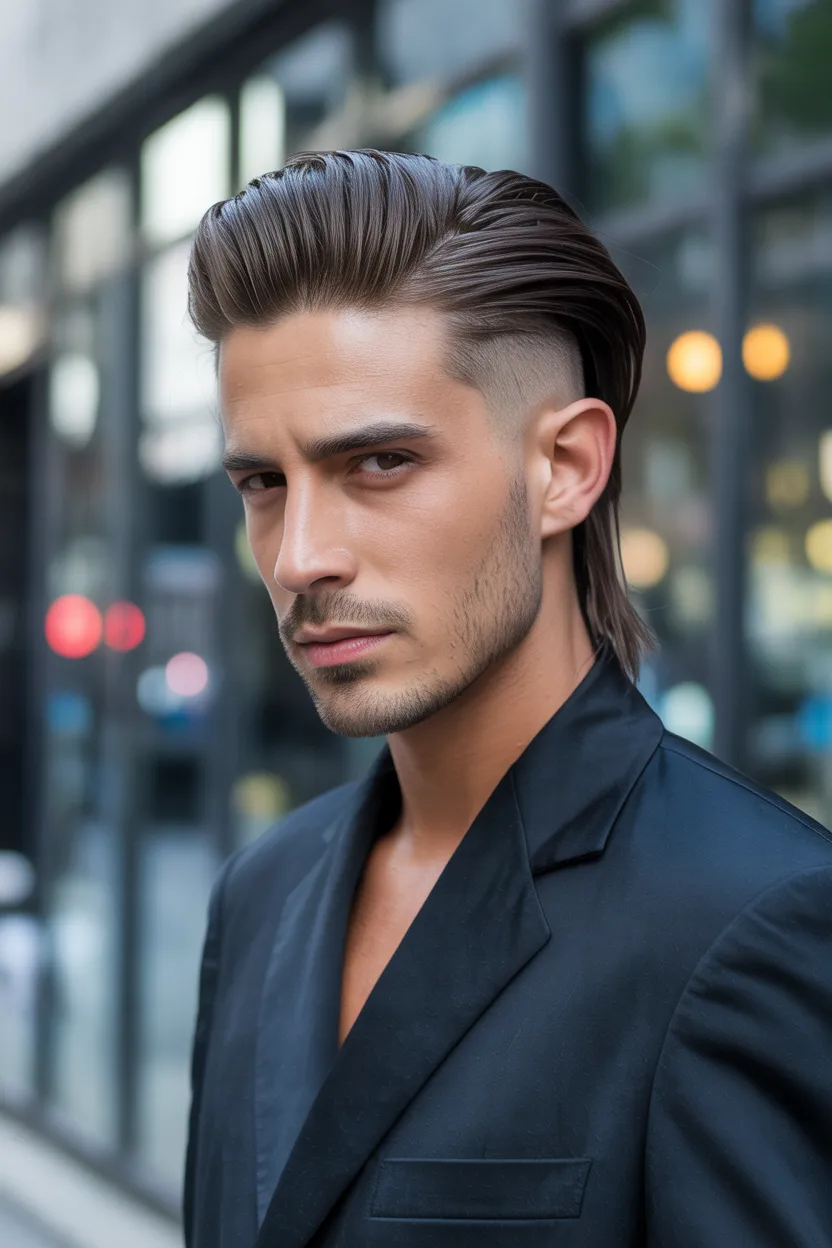 The slick back undercut gives straight hair a bold, polished look. The top stays longer, while the sides get clipped much shorter to create strong contrast. That difference in length makes the style stand out.
