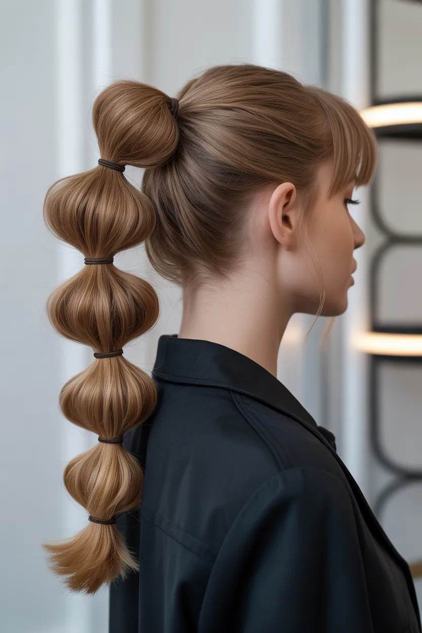 This hairstyle looks especially good on longer hair because the bubbles have more space to stand out. You can wear it sleek for a more polished finish or keep it soft for a playful vibe. Either way, it looks stylish and modern.