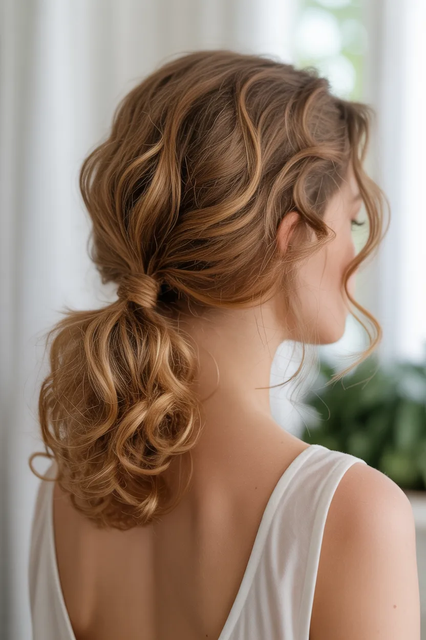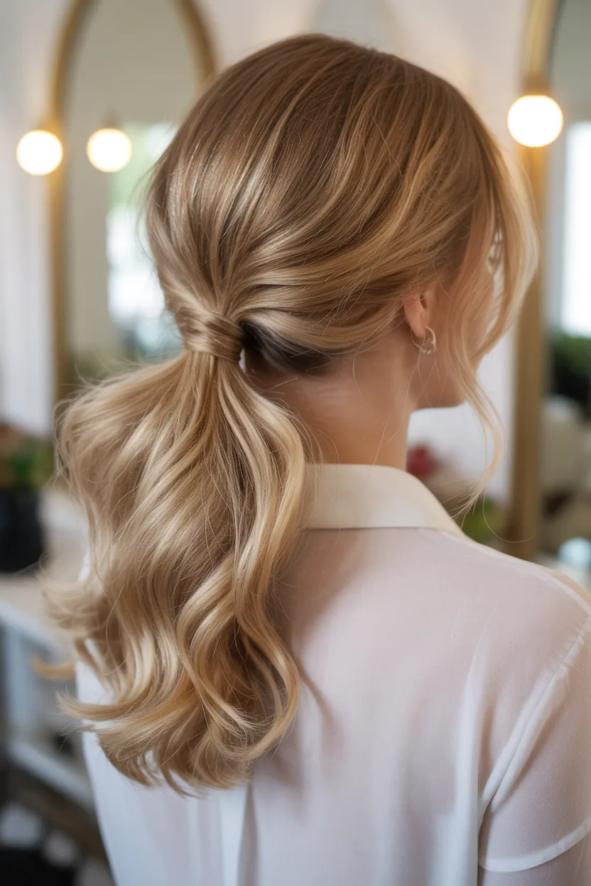 A wavy ponytail gives you softness, texture, and a fuller shape. It feels feminine and polished while still staying easy to wear.