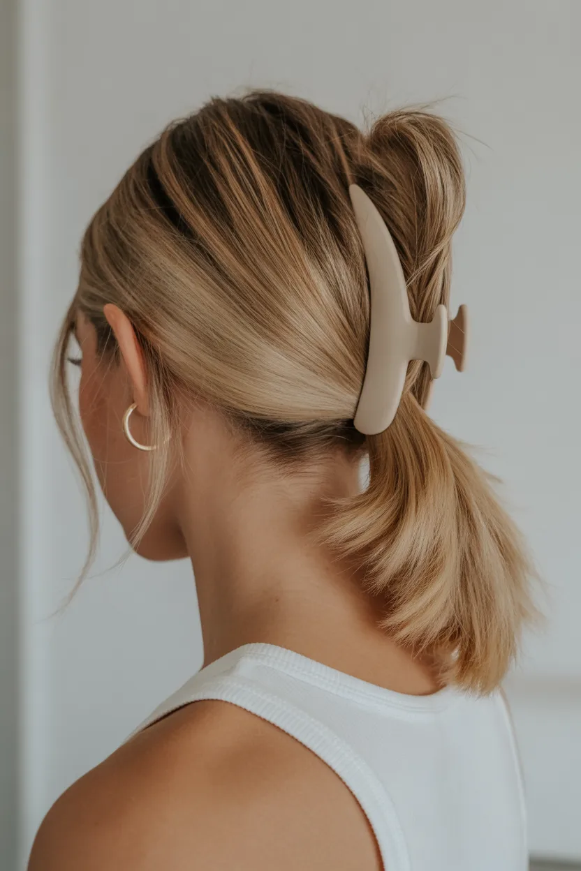 A ponytail with claw clip detail feels trendy and easy at the same time. You can use a claw clip to hold the top sections above the ponytail or add one as a decorative detail near the base. That little accent makes the hairstyle feel more current right away.