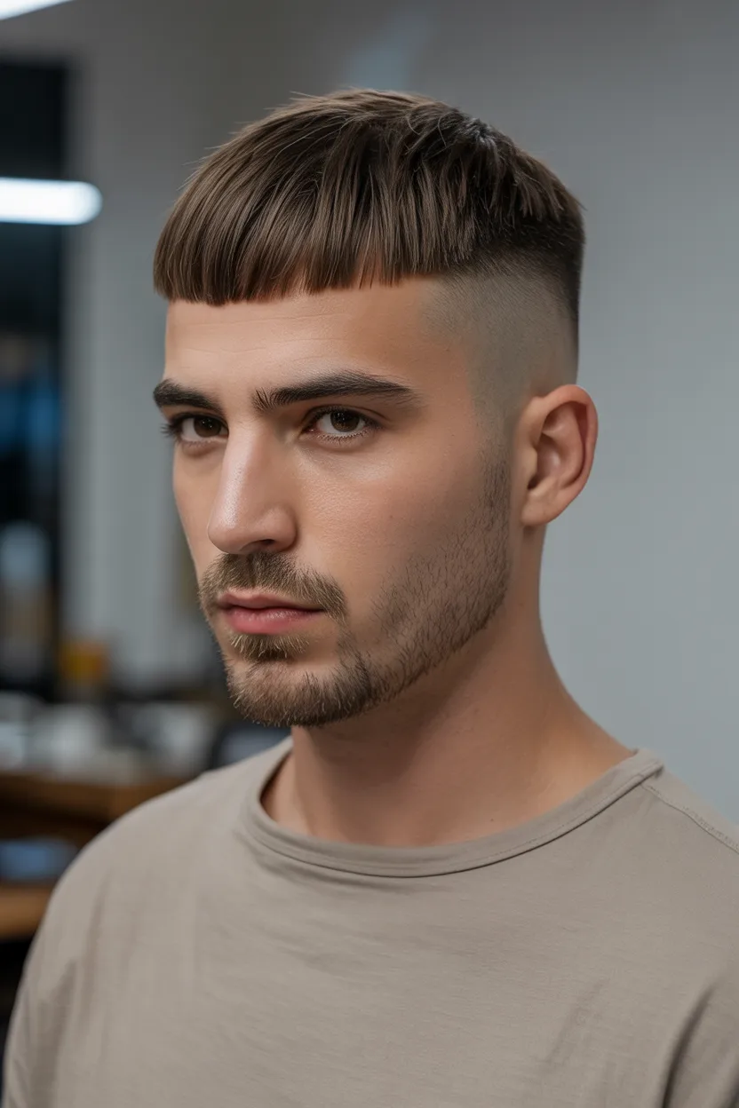 I like this style because it keeps everything short and manageable while still giving you some shape. The brush cut is neat, masculine, and easy to style, which makes it a smart everyday haircut.