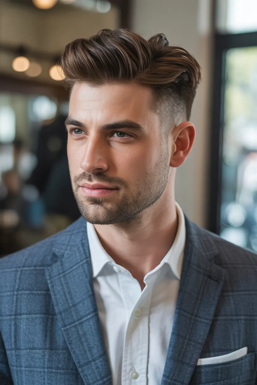 The short pompadour gives you that sleek, lifted look of a traditional pompadour but in a more practical length. You still get shape and volume, but the haircut feels cleaner and easier to wear.