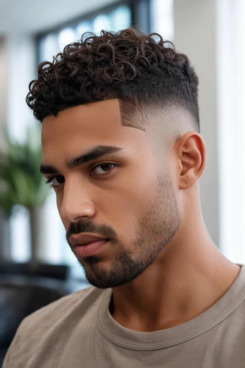 A short curly fade gives you the best of both worlds. You keep your natural curls on top while the faded sides create shape and contrast.
