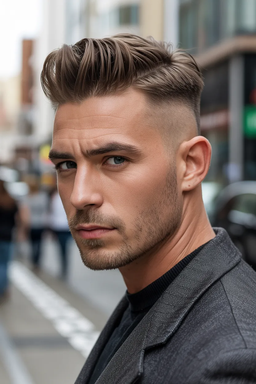 I like this option for men who want to test out faded sides without going straight to skin fade territory. It also grows out nicely, which saves you from running back to the barber every five minutes.