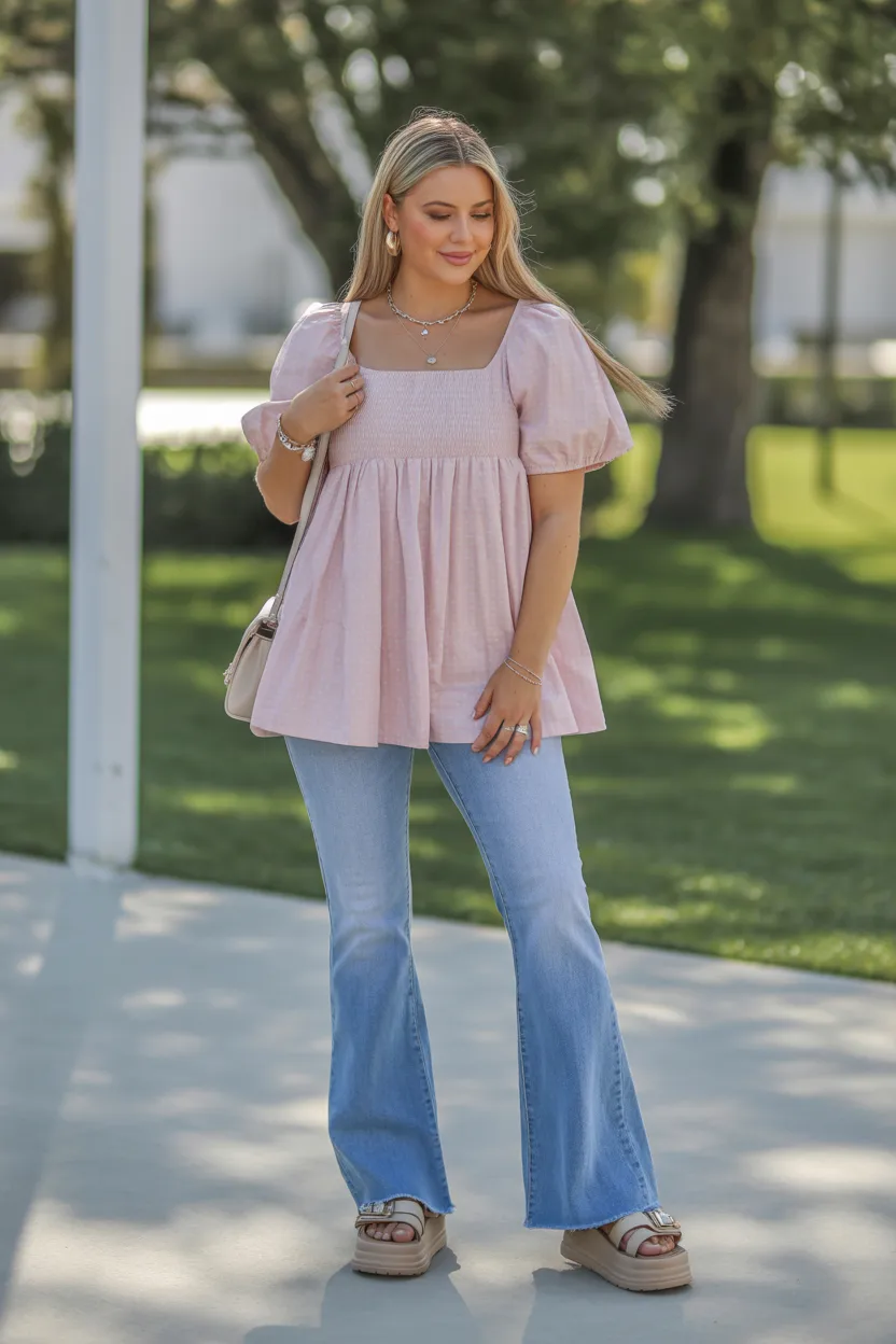 15. Baby Doll Top With Flared Jeans