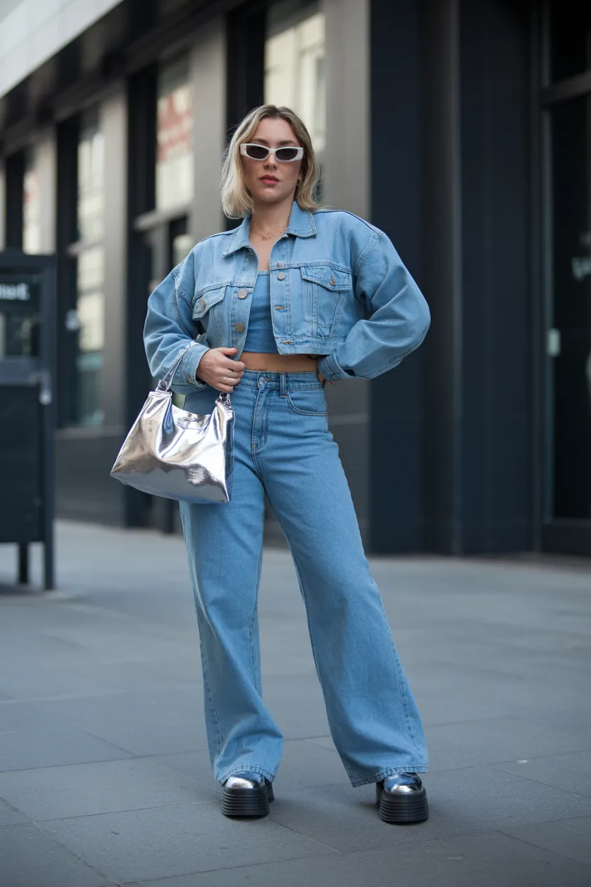 Denim on denim has real Y2K energy when you keep the shapes modern and flattering. A cropped denim jacket over jeans or a denim skirt gives you that iconic throwback feel without looking outdated. The trick is choosing pieces that feel intentional.